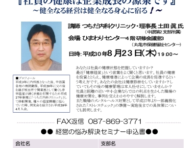 社員の健康は企業成長の源泉です~健全なる経営は健全なる心身に宿る!~ ※台風で延期になっていた経営の悩み解決セミナー第1回目です