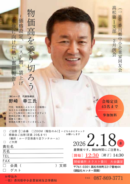 2026/02/18 (水) 12:30~ 物価高を乗り切ろう!~価格設定、コスト増、賃上げ、、、解決に向けた熱い奮闘報告