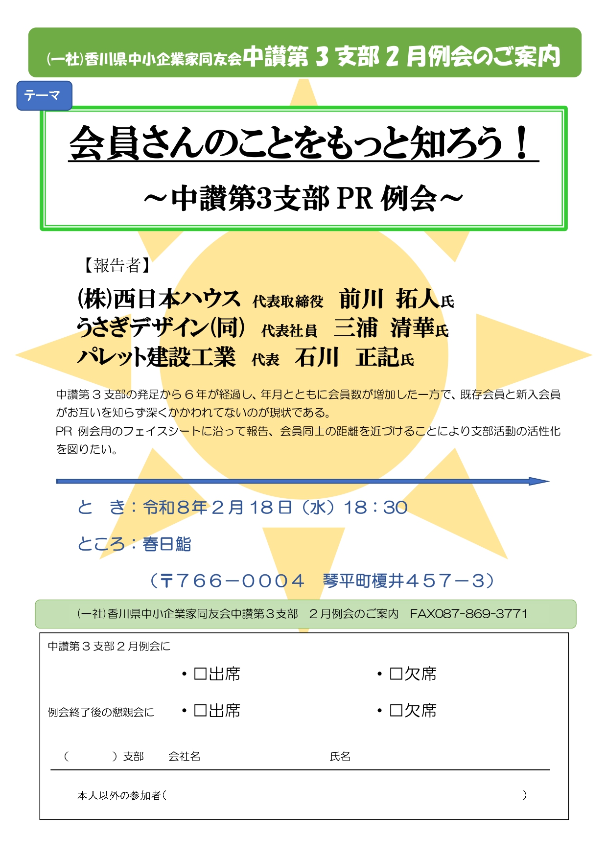 2026/02/18 (水) 18:30~会員さんのことをもっと知ろう! ~中讃第3支部PR例会~