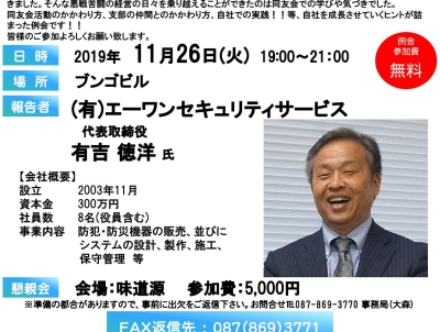 - ◎日時:2019年11月26日(火)19:00~21:00