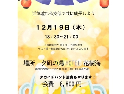 2024/12/19 (木) 18:30~ 12月度高松第1支部例会(臨時総会&忘年会)