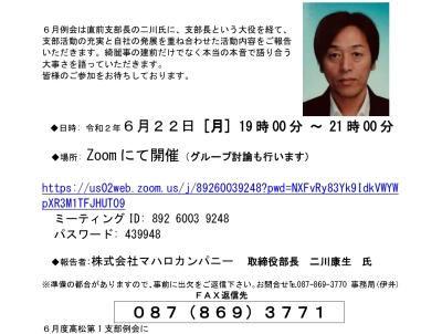 - ◎日時:2020/06/22 (月) 19:00~21:00