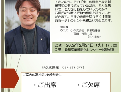 2026/02/24 (火) 19:00~ 未来を拓く今日の一歩~その価値を香川から全国へ~