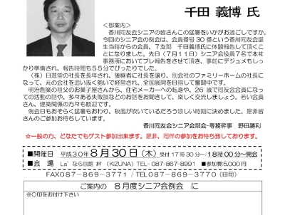 - ◎日時:2018年8月7日(火)19:00~