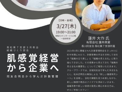 2025/03/27 (木) 19:00~ 「肌感覚経営から企業へ!」~あなたは自社の価値がちゃんと見えていますか?~