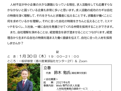 2025/01/30 (木) 19:00~ 『自社の特徴を求職者にどのように伝えますか?』 ~求人票作成でも大切なのは経営理念です!~