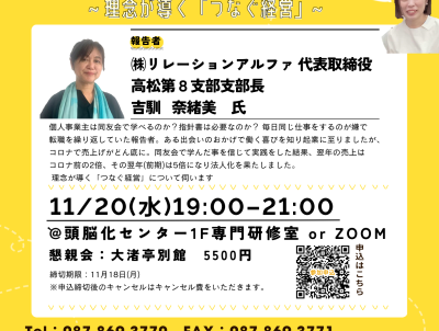 2024/11/20 (水) 19:00~ 支部長、理念って本当に必要ですか。 ~理念が導く「つなぐ経営」~