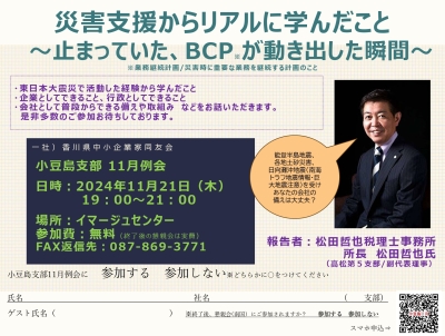 2024/11/21 (木) 19:00~ 災害支援からリアルに学んだこと~止まっていた、BCPが動き出した瞬間~