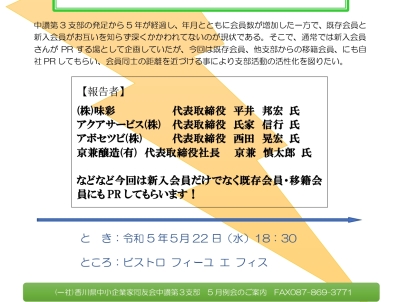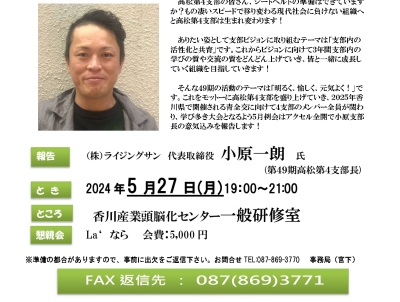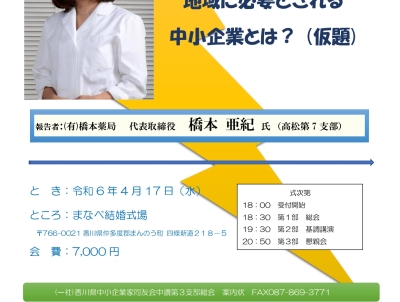 2024/04/17 (水) 18:30~4月度中讃第3支部例会【支部総会】 「地域に必要とされる中小企業とは?」