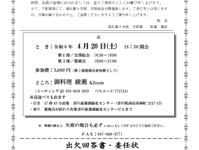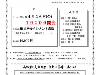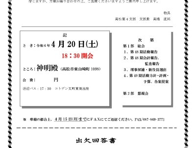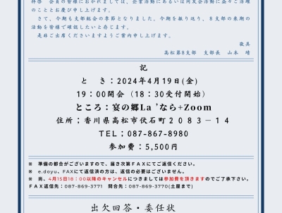 2024/04/26 (金) 19:00~ 令和4年度高松第5支部総会のご案内