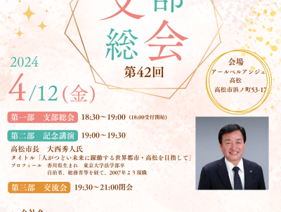 2024/04/12 (金) 18:30~ 人がつどい未来に躍動する世界都市・高松を目指して《高松第7支部 支部総会》