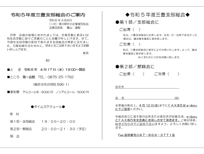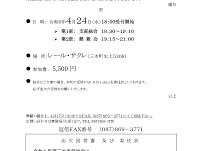 2024/04/17 (水) 19:00~ 令和5年度三豊支部総会のご案内