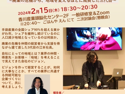 2024/02/15 (木) 18:30~ ビジョンがあれば自社も地域も変えられる~廃業の危機から、地域を変えるほどに成長した三代目~