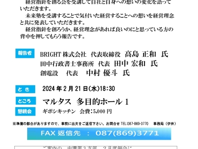 2024/02/21 (水) 18:30~ 「経営指針を創る会 及び支部未来塾 受講生発表」 ~経営理念に込めた経営者の思い~
