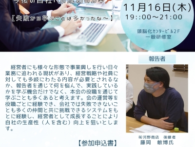 2023/11/16 (木) 19:00~中小企業家同友会での経験は、今後の自社への成功のカギ~失敗から学ぶことは多かったな~