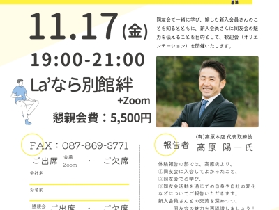 2023/11/17 (金) 19:00~新入会員歓迎会 新入会員さんのことを知ろう!同友会の魅力を伝えよう!