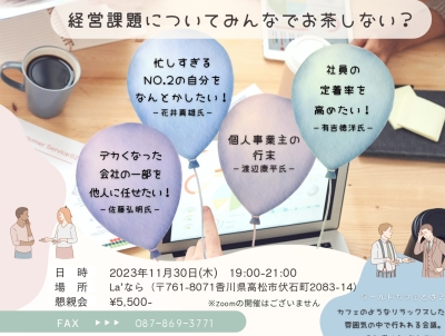 2023/11/30 (木) 19:00~経営お悩みワールドカフェ~経営課題についてみんなでお茶しない?~