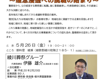 - ◎場所:御料理 綾瀬(綾歌郡綾川町陶2185−1)&Zoom