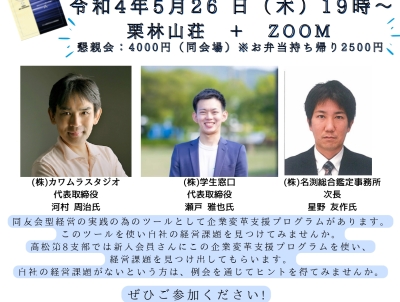 - ◎場所:第4会議室(香川産業頭脳化センター4F)&Zoom併用