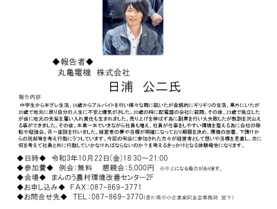 - ◎場所: まんのう町農村環境改善センター or Zoom