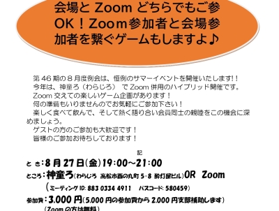 - ◎日時: 2021/08/27 (金) 18:30~21:00