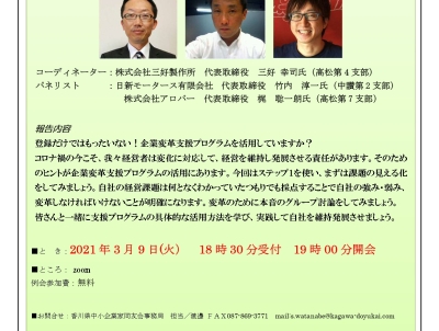 - ◎場所:一般研修室(香川産業頭脳化センター2F)or Zoom(報告配信のみ)