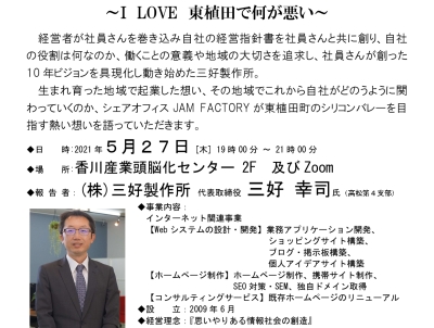 - ◎場所:一般研修室(香川産業頭脳化センター2F) Zoom