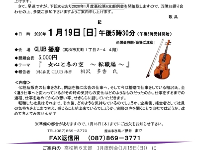 - ◎日時:2020年1月19日(日)17:30~20:00