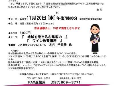 - ◎日時:2019年11月20日(水)19:00~21:00