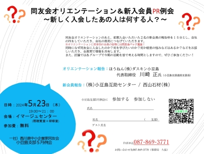 2024/05/23 (木) 19:00~ 同友会オリエンテーション&新入会員PR例会~新しく入会したあの人は何する人?~