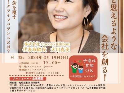 2024/2/19(月)19:00~ 働きたいと思えるような会社を創る! ~固定概念を覆すワークライフバランスとは?~