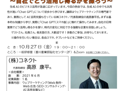 2023/10/27(金)19:00~『噂のChat GPTを学び、触れてみよう!』 ~自社でどう活用し得るかを探ろう~