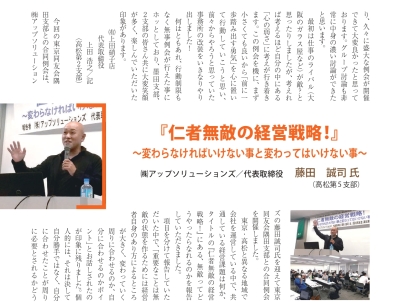 植松さんからのご縁で実現 した高松第2支部と東京同友 会墨田支部の合同例会、当日 は藤田氏のカ...