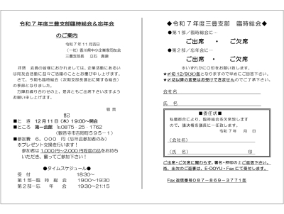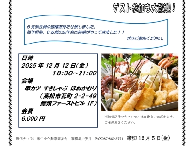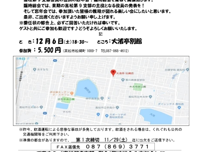 2025/12/06 (土) 18:30~ 12月度高松第9支部臨時総会・忘年会