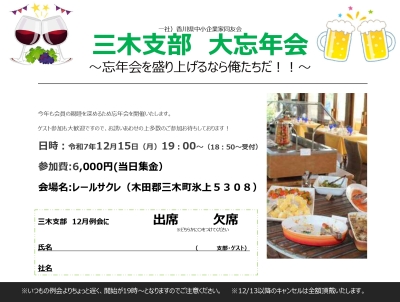 2025/12/15 (月) 19:00~ 三木支部 大忘年会 ~忘年会を盛り上げるなら俺たちだ!!~