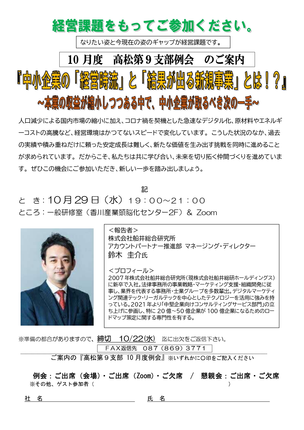 2025/10/29 (水) 19:00~ 『中小企業の「経営時流」と「結果が出る新規事業」とは!?』 ~本業の収益が縮小しつつある中で、中小企業が取るべき次の一手~