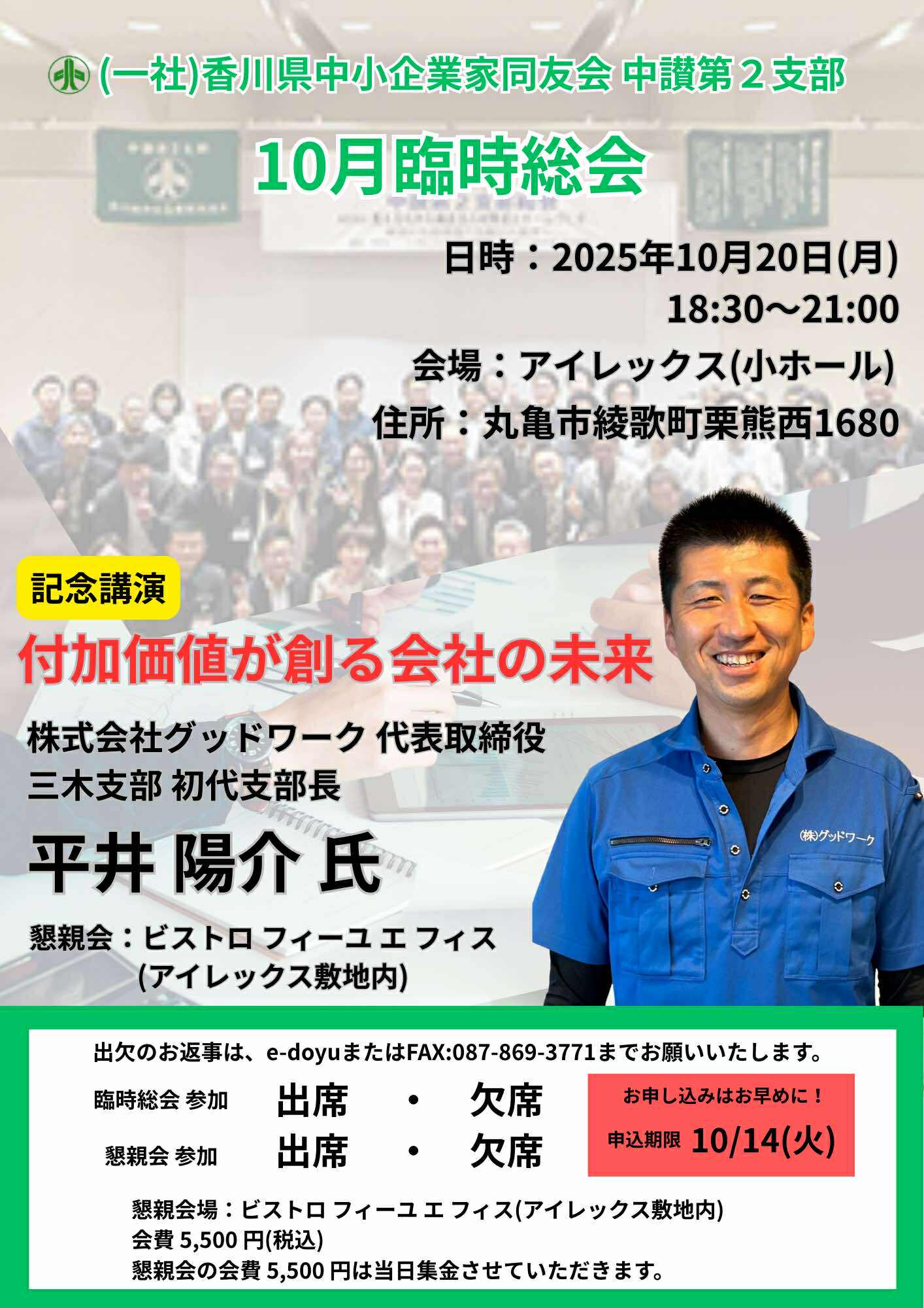 臨時総会になりますので、普段お忙しい方も是非ご参加ください。
