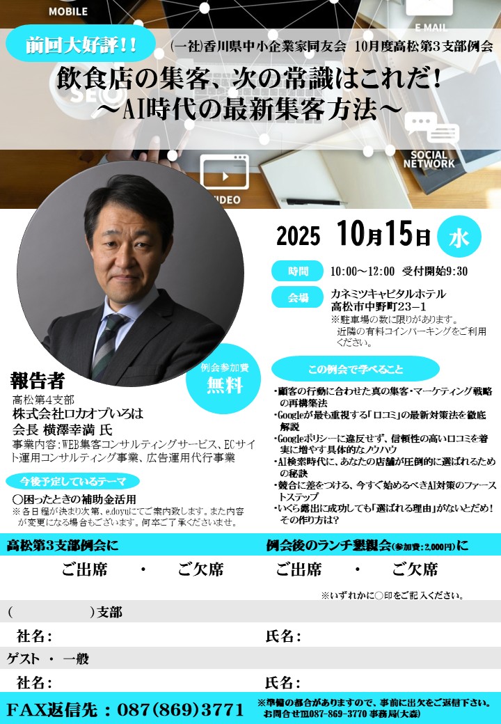 2025/10/15 (水) 10:00~ 飲食店の集客、次の常識はこれだ! ~AI時代の最新集客方法~