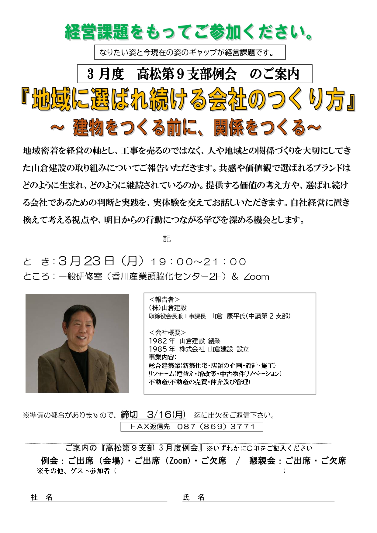 2026/03/23 (月) 19:00~ 『地域に選ばれ続ける会社のつくり方』~ 建物をつくる前に、関係をつくる~