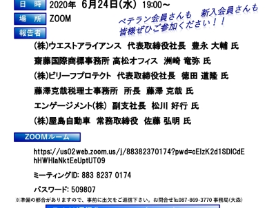 - ◎日時:2020/06/24 (水) 19:00~21:00