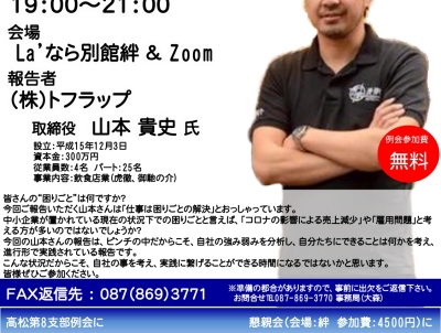 大納涼例会 安全、安心を確保し そろ~り『始動』8支部の対面例会