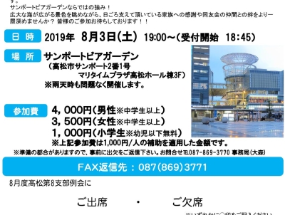 - ◎日時:2019年8月3日(土) 19:00〜21:00