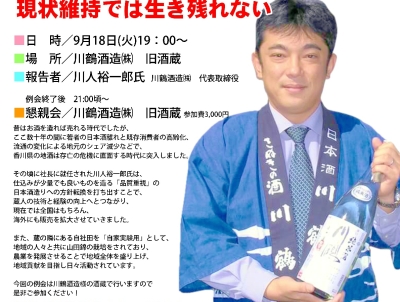 - ◎日時:2018年9月18日(火)19:00~ (18:30~酒蔵見学会実施)