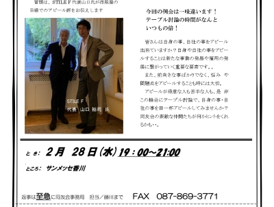 - ◎場所:小会議室(サンメッセ香川2F) ZOOM