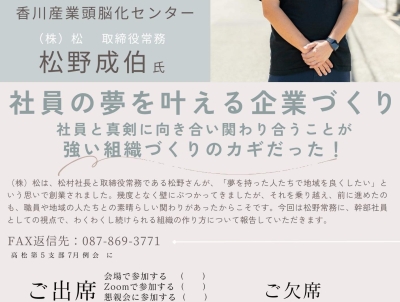 - ◎場所:一般研修室(香川産業頭脳化センター2F)&Zoom併用