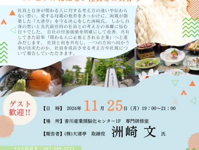 2024/11/25 (月) 19:00~ 必要とされる企業、付加価値とは ~マニュアルにはない社員との共育ち~