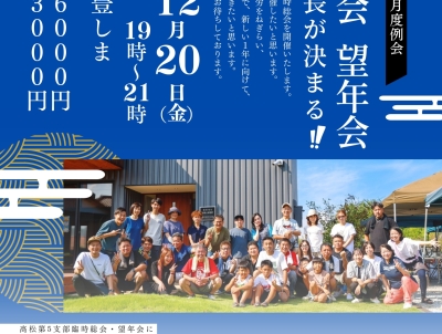2024/12/20 (金) 19:00~ 12月度高松第5支部例会〈臨時総会+望年会〉