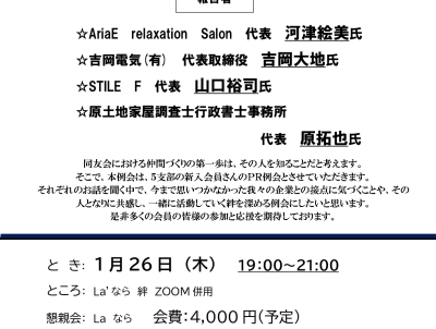 - ◎日時:令和5年1月26日(木)19:00~