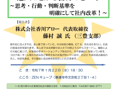 2025/01/22 (水) 18:30~ ”見える化”で他人事から自分ごとへ!~思考・行動・判断基準を明確にして社内改革!~