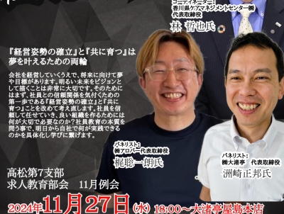 2024/11/25 (月) 19:00~ 必要とされる企業、付加価値とは ~マニュアルにはない社員との共育ち~